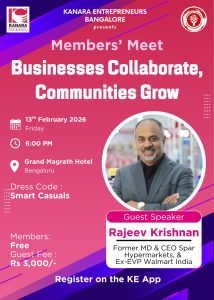 Entry: KE Blr Members – FREE | Guests – Rs 3,000/-