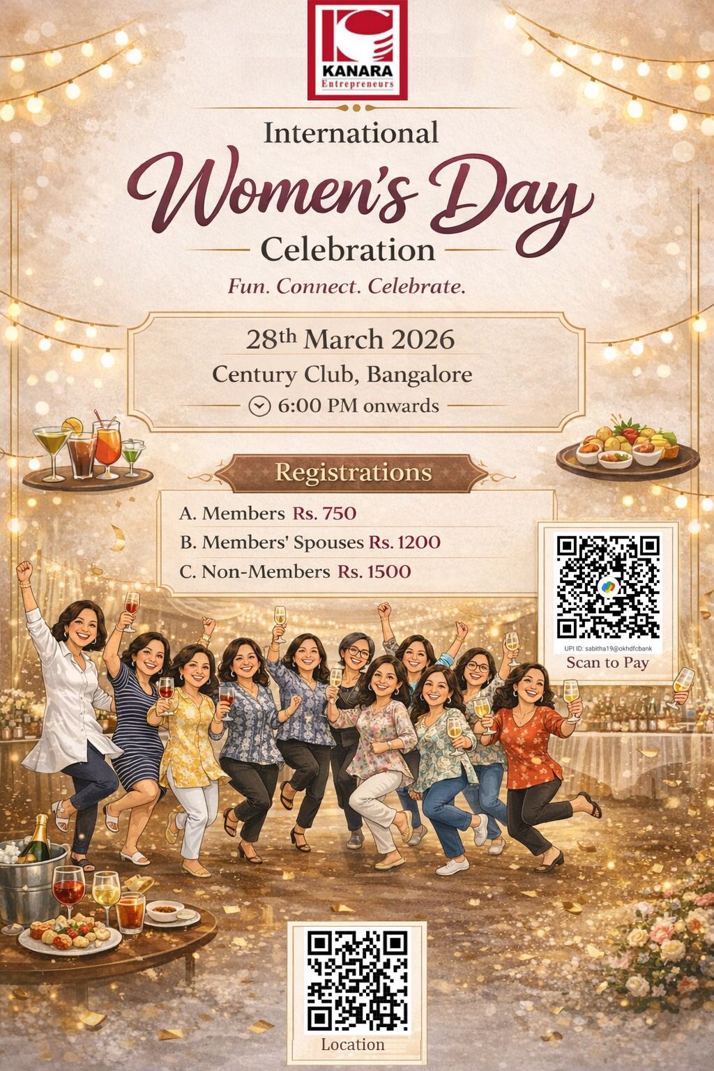 Hey Members Kanara Entrepreneurs – International Women’s Day Celebration 28th March 2026 | 6:00 PM onwards | Century Club, Bangalore…