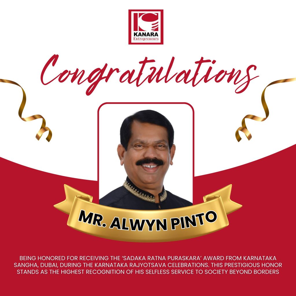 KE proudly congratulates our esteemed member, Mr. Alwyn Pinto, on receiving the ‘Sadaka Ratna Puraskara’ award from Karnataka Sangha, Dubai, during the Karnataka Rajyotsava celebrations on 9th November 2025.