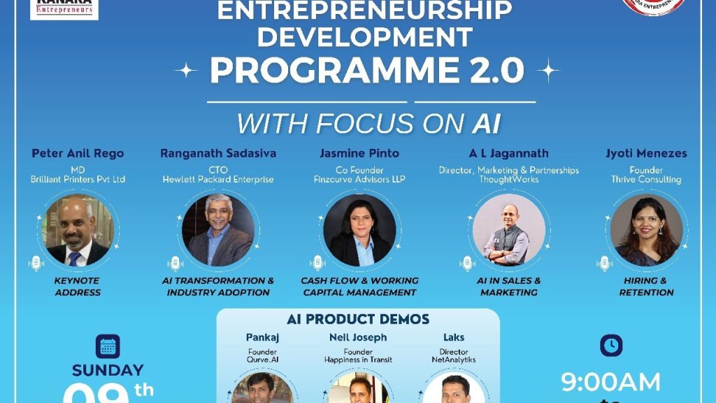 The Kanara Entrepreneurs (KE) Bangalore Chapter successfully conducted the second edition of its full-day Entrepreneurship Development Programme (EDP 2.0) on Sunday, 9th March, 2025. This programme aimed at equipping members and guests with essential business skills relevant to today’s dynamic market. This year, the focus was on Artificial Intelligence (AI)—a technology that is reshaping industries worldwide.