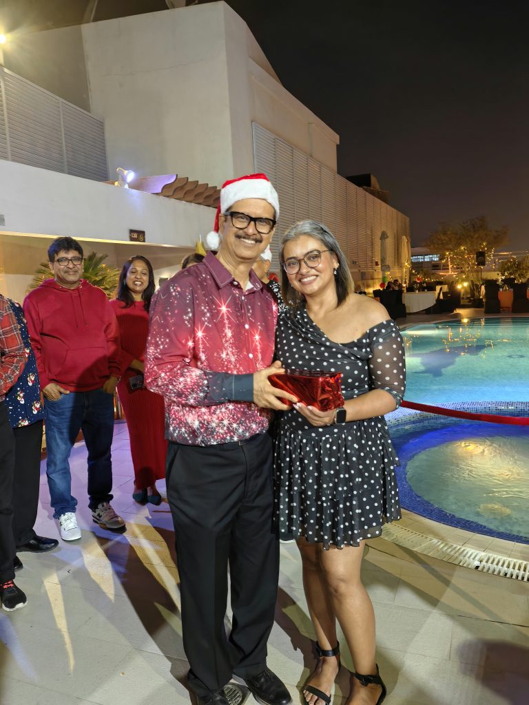 The vibrant evening was packed with entertainment, games, laughter, and lively camaraderie, continuing well into the night. Dorothy Fernandes, President of KE Dubai, warmly welcomed the members and guests, delivered a heartfelt Christmas message, and shared highlights of KE Dubai’s activities and achievements in 2025.