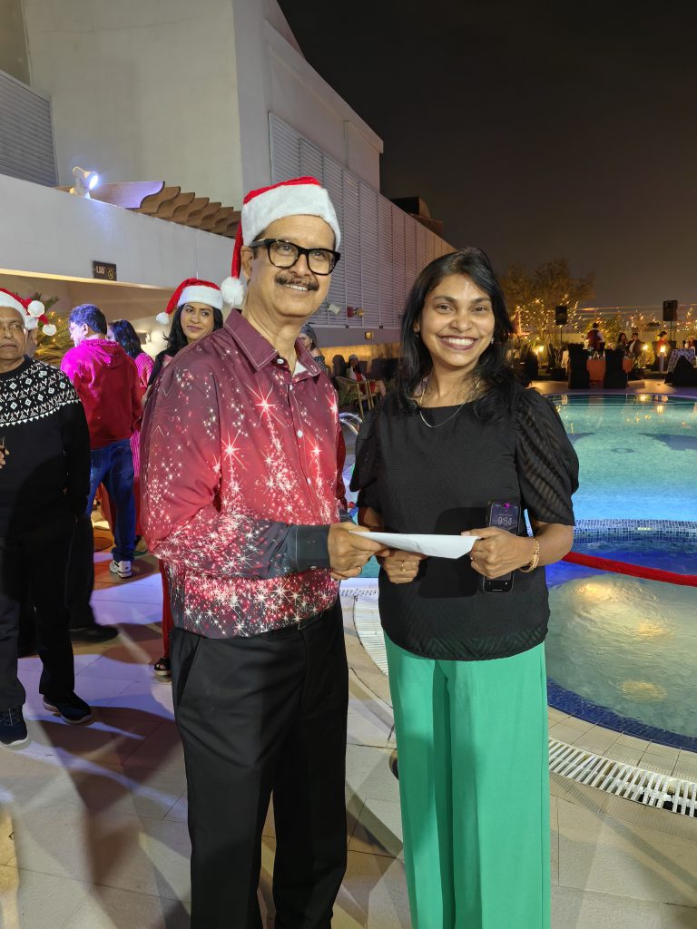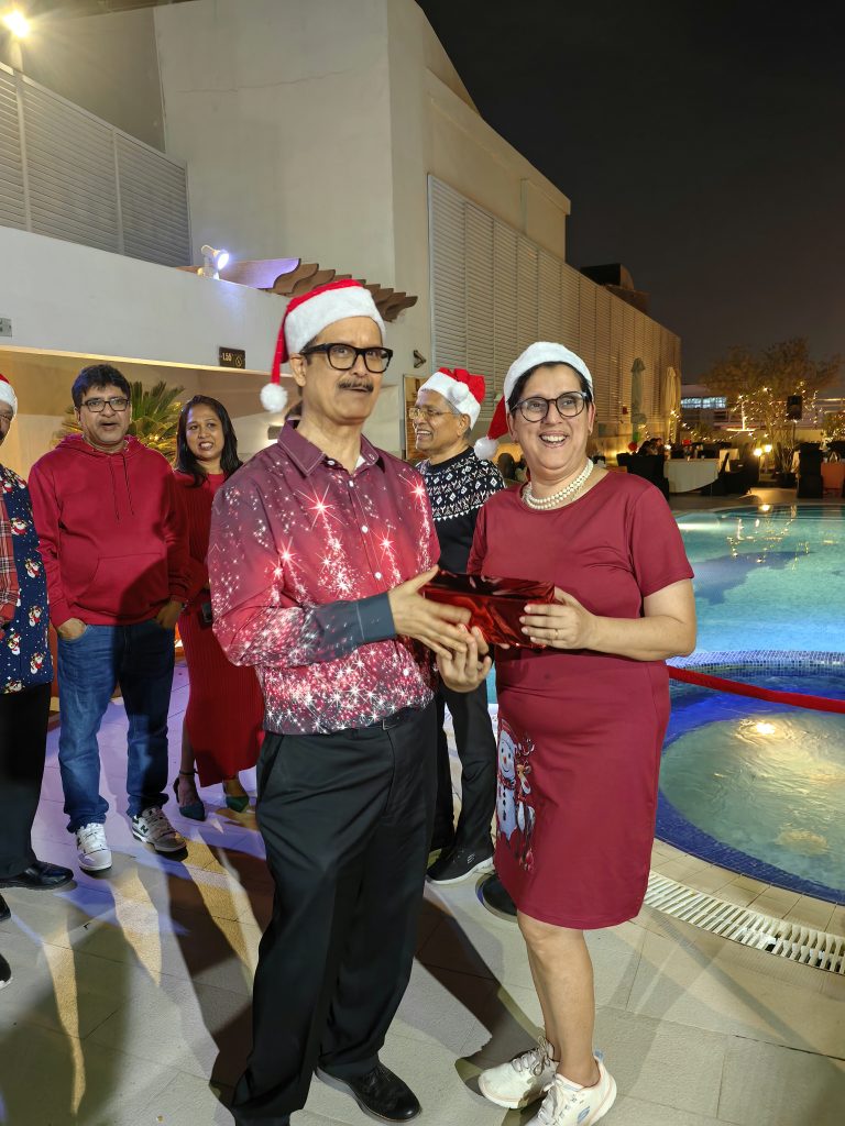 The vibrant evening was packed with entertainment, games, laughter, and lively camaraderie, continuing well into the night. Dorothy Fernandes, President of KE Dubai, warmly welcomed the members and guests, delivered a heartfelt Christmas message, and shared highlights of KE Dubai’s activities and achievements in 2025.